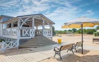 Собственный оборудованный пляж курорта расположен в 500 метрах – до него организован регулярный трансфер на электромобиле. Пляжная инфраструктура курорта входит в перечень лучших практик организации пляжного отдыха на Черноморском побережье и подходит как для размеренного, так и для активного отдыха.